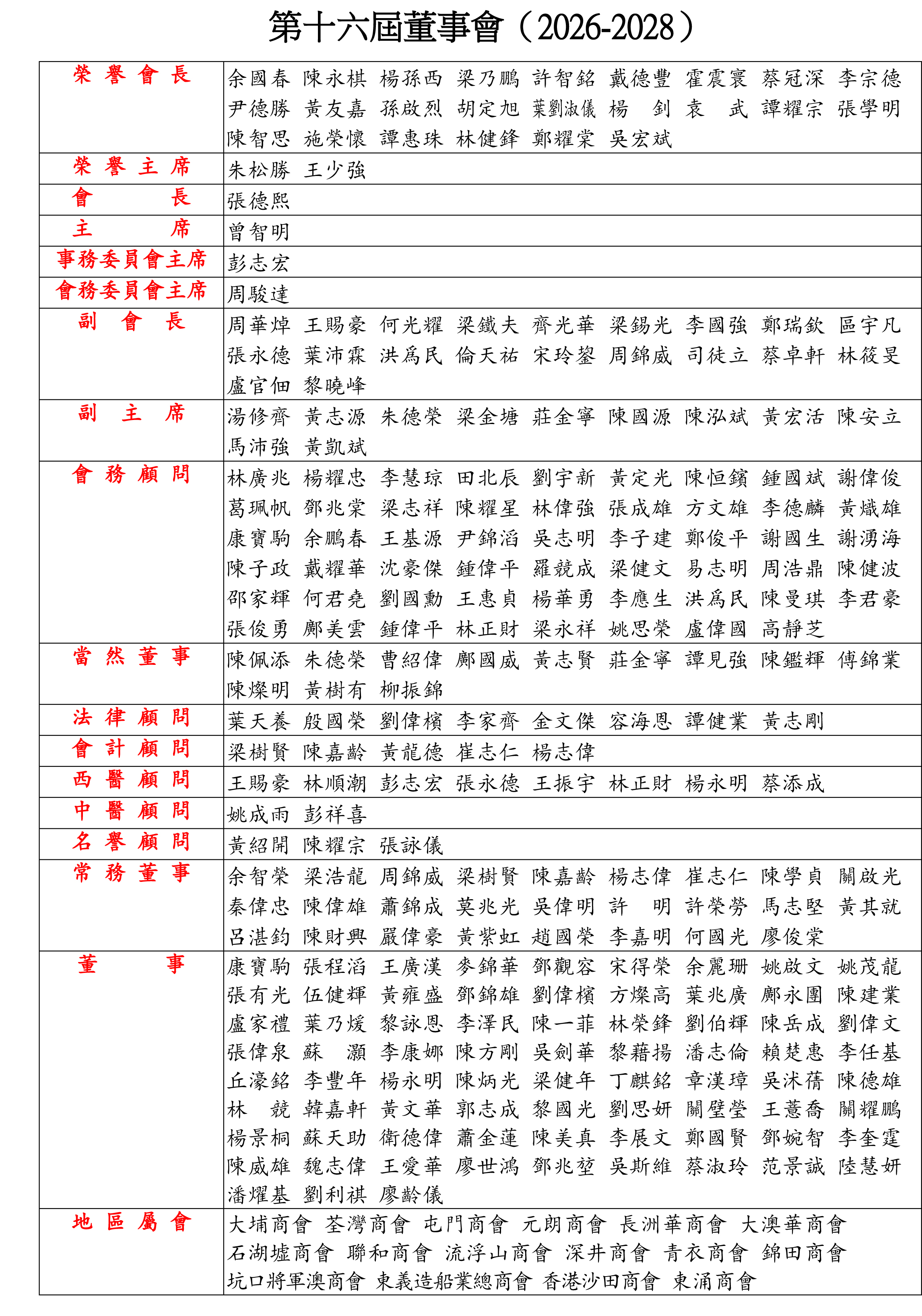 第十六届董事会组织表