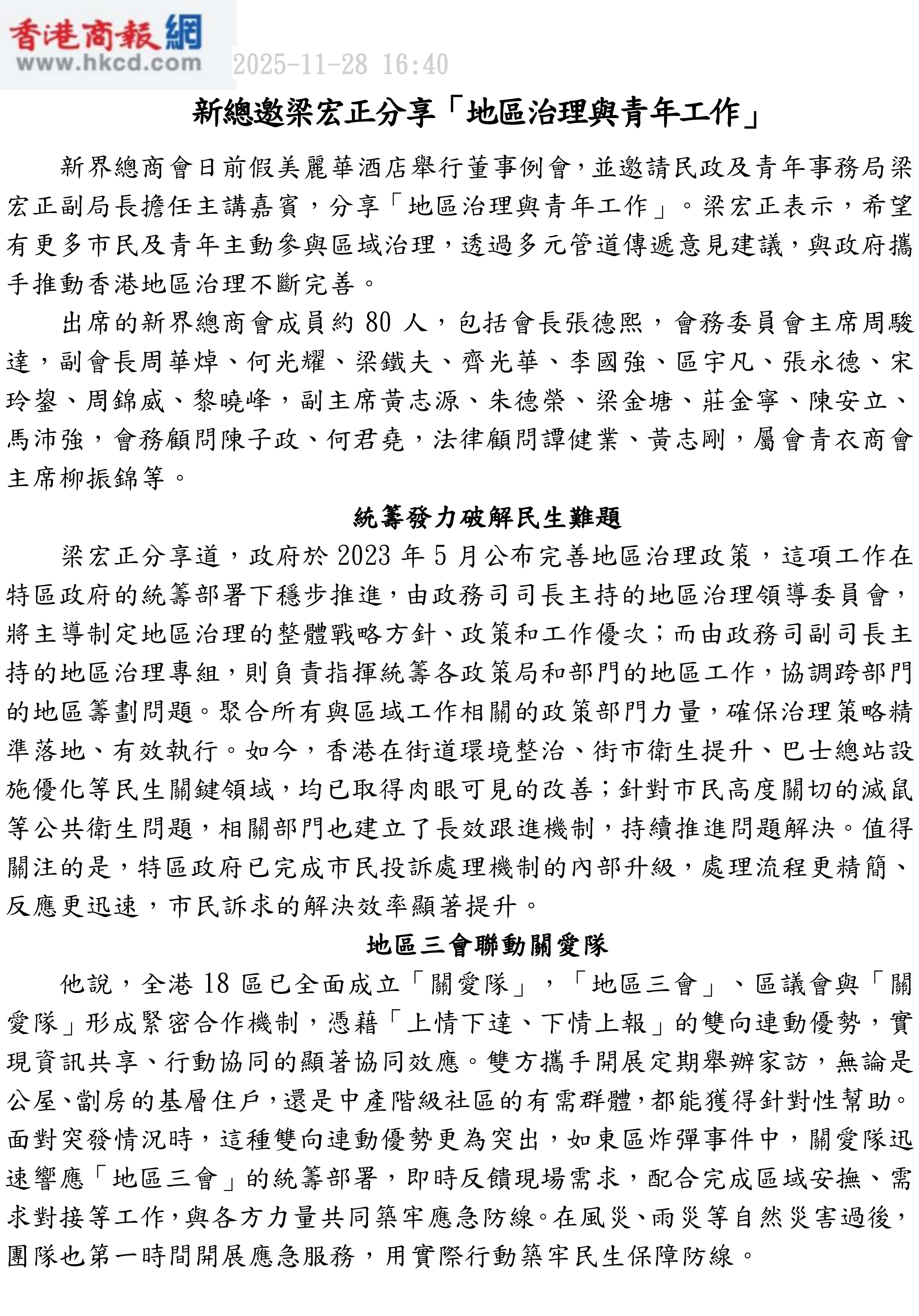 2025.11.25民政及青年事务局副局长梁宏正分享「地区治理与青年工作」(商报)