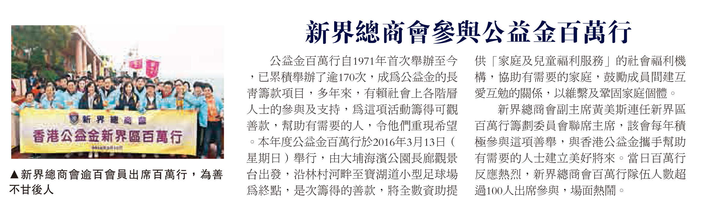2016年3月13日:新界总商会公益金新界区百万行-大公报